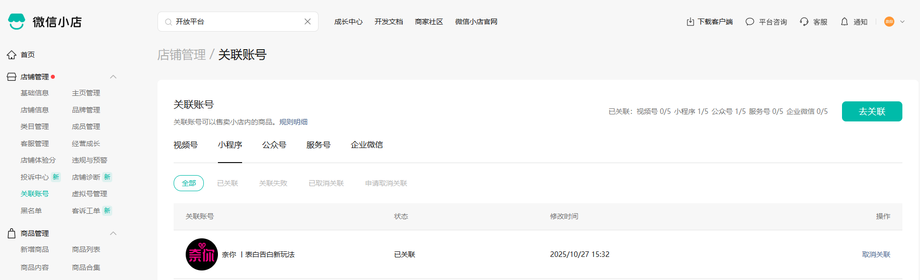 使用https://api.weixin.qq.com/cgi-bin/token 填入相关小程序appid和密钥后生成access_toekn后 使用https://api.weixin.qq.com/channels/ec/basics/info/get?access_token=(获取的access_token) 调用返回错误码48001。 但是我检查了小程序和微信小店,它们之间是已经关联的
