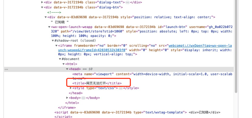 H5跳转小程序时,使用wx-open-launch-weapp生成的iframe内显示网页无法打开