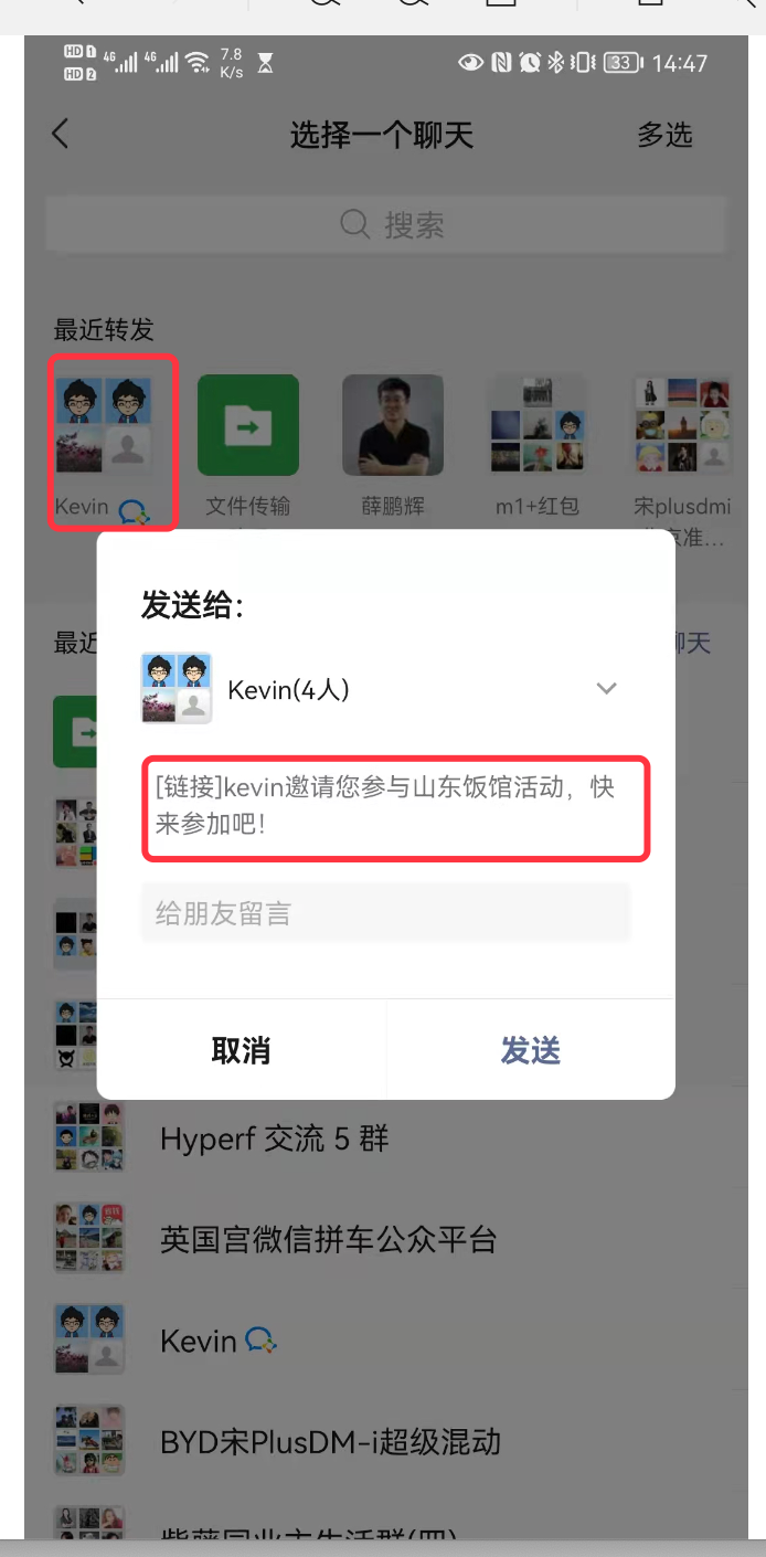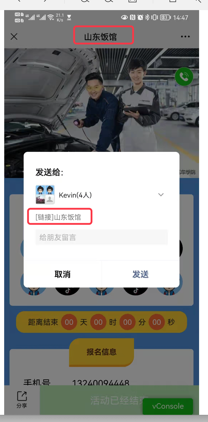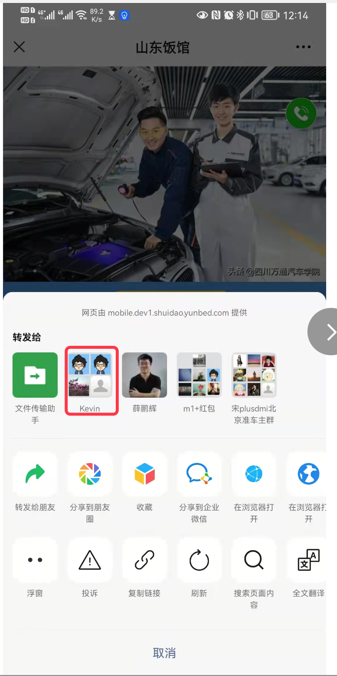 通过弹框顶部的“转发给”分享的内容,不能自定义。显示的是页面的标题和链接。