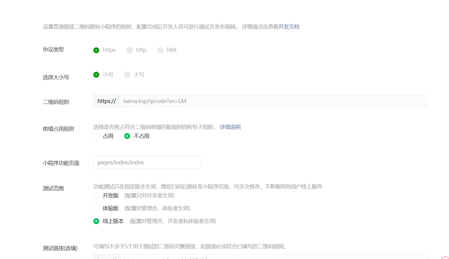 小程序开启了扫描普通二维码跳转到小程序的功能,按官方文档要求进行了设置。使用微信扫描二维码时,并不会跳转到小程序的功能页面,而是显示二维码对应的链接。域名也已经备案过,麻烦帮忙看下。