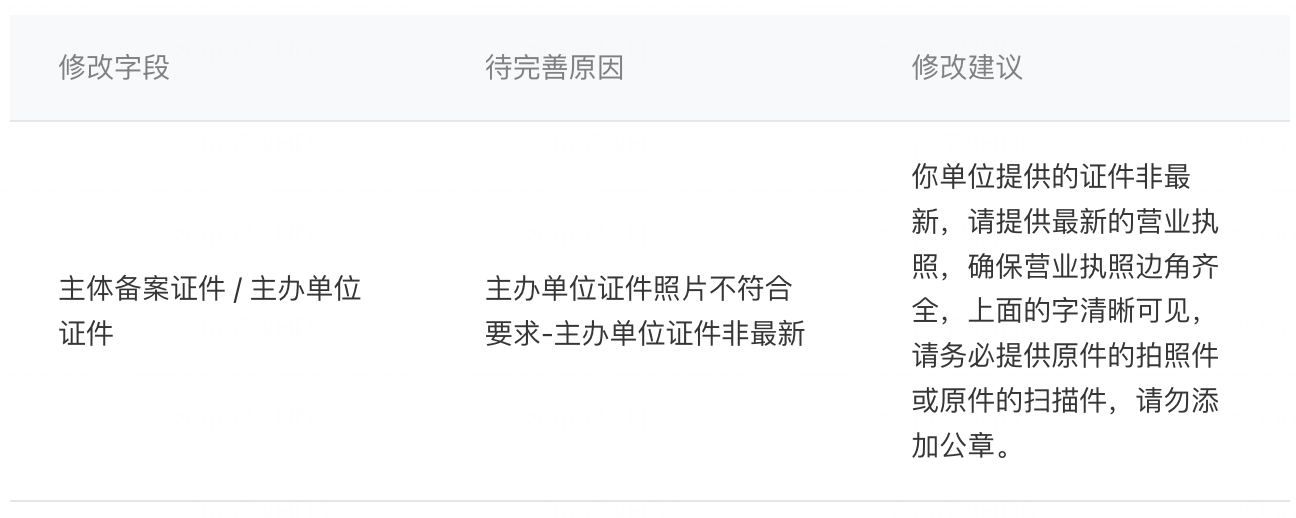 你好,根据国家企业信用信息公示系统中显示当前主体近期有变更过主体信息,建议贵司核对订单中上传的营业执照是否最新,请重新上传最新营业执照进行备案