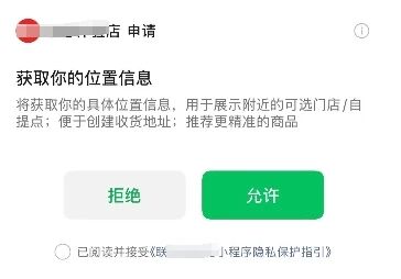 1、小程序场景:我们线上购买,线下提货。需要根据后台设置的规则进行匹配用户在哪个线下门店提货。一般来说我们会默认 距离用户最近的店铺,然后就需要进入小程序获取用户位置,然后分配用户进入对应的线上店铺。那么这个情况就会出现,可能违背规则 案例1:在用户未实际体验小程序对应权限的功能或服务时,就要求用户进行授权。