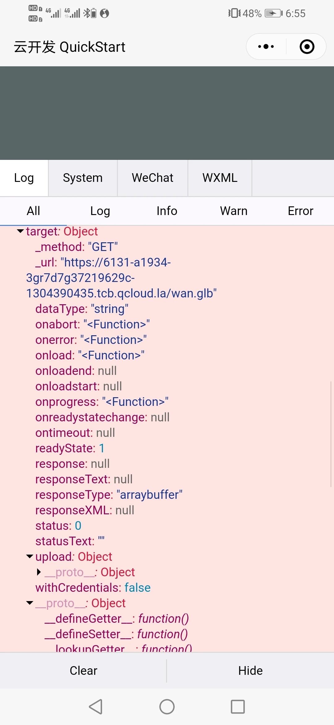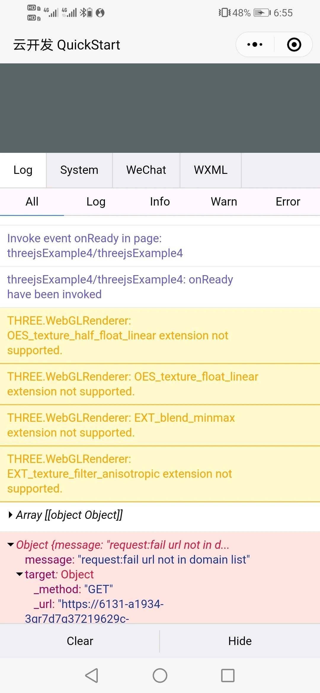 出现问题如上所示,我的小程序的功能是显示一个三维模型,并可以进行旋转展示,同时支持放大缩小。求问如何解决?