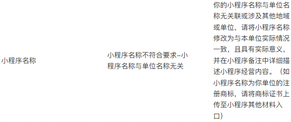 显示小程序名称不符合要求,与单位名称无关。附图是我公司的主体名称和小程序名称,请问需要怎么填才正确?谢谢
