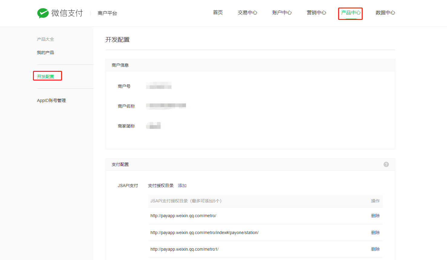 登录【微信支付商户平台 (opens new window) ->产品中心->开发配置】,设置后一般5分钟内生效。