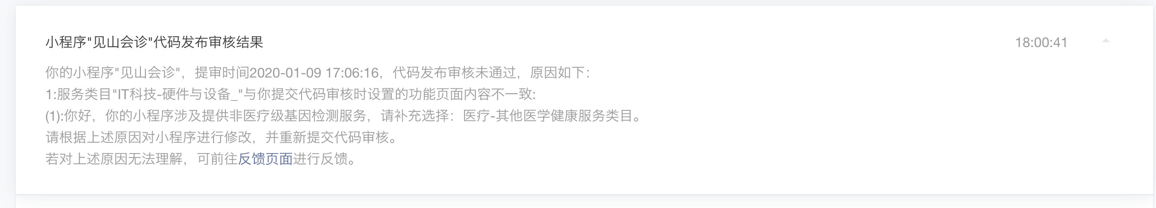 代码审核不通过,要求增加“医疗>其他医学健康服务”类目,按要求增加了“医疗>其他医学健康服务”但是类目审核不通过。
