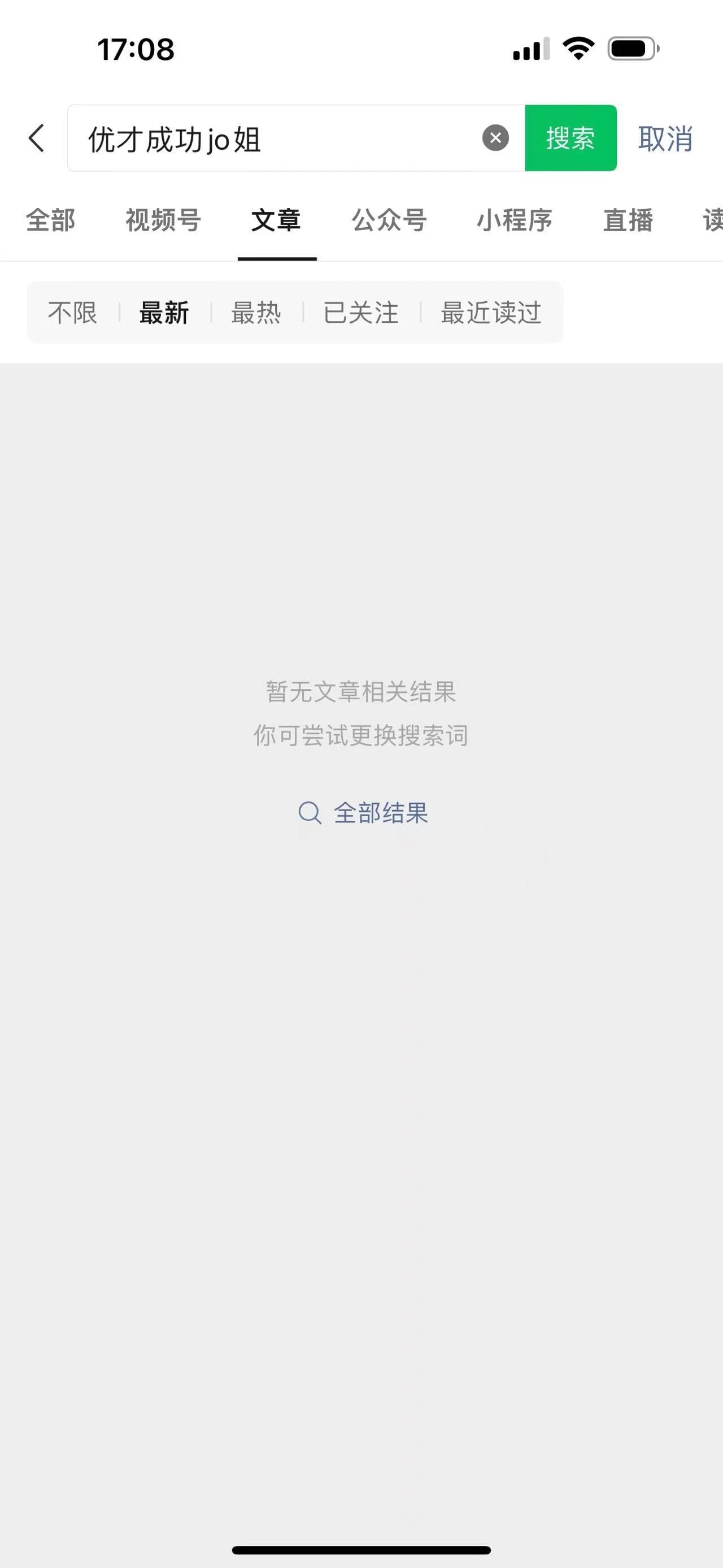 昨天把公众号从原目标迁移到新目标之后,显示迁移成功,但是刚刚在微信搜一搜时候,文章和账号都不显示,怎么办呢?