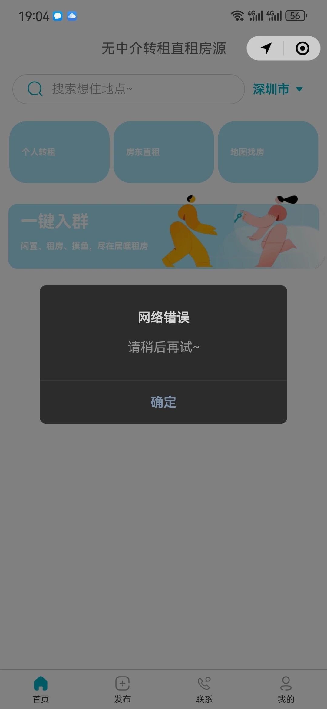 现名称:鱿鱼租房-转租合租直租 原名称:居哩租房 ID:wxb3ca358ebc875c73 现状:认证到期暂未认证,修改了名称尚未重新提交备案,目前问题为移动端访问提示网络错误,但PC端访问正常,尚不确定是什么原因;