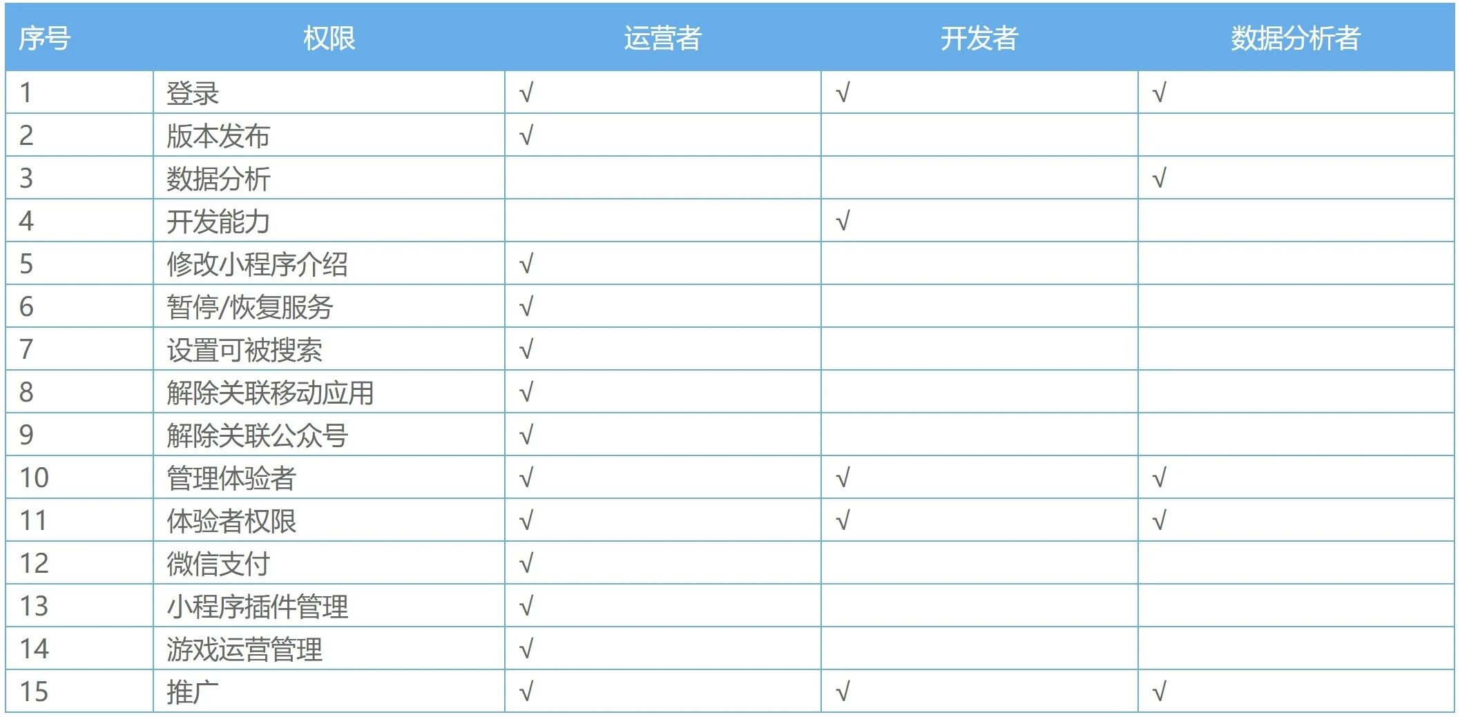 开发者权限:可使用小程序开发者工具及开发版小程序进行开发