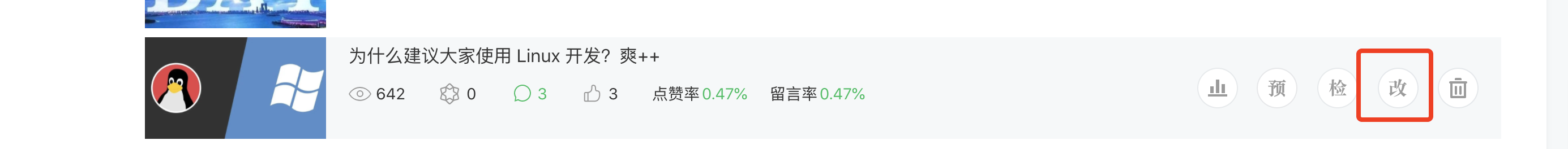 首页,找到发布的文章,鼠标移过去,有个【改】