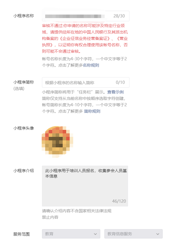 如图,想要修改小程序介绍,但是方框变灰无法修改,请问是因为什么?