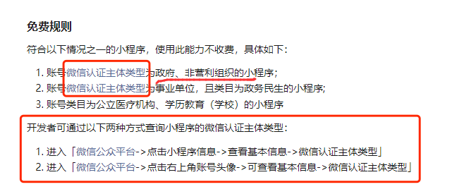 这里是看微信认证的主体类型,不是看主体信息这里显示的,你可以查看一下是什么认证类型,再看看是否符合条件。