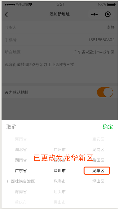 前端省市区出现的龙华区和后台校验的龙华新区不匹配,导致地址新增出现问题,无法保存