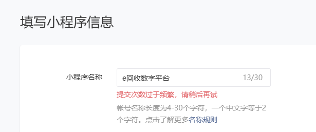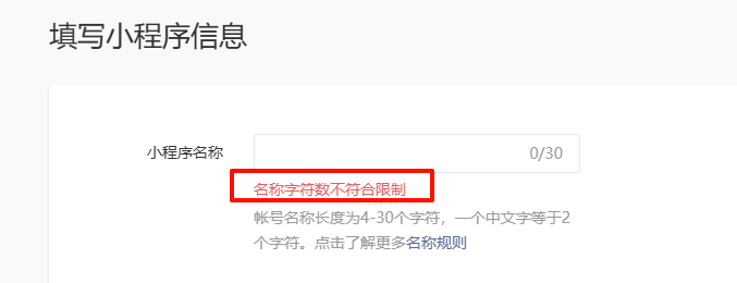 3.填写内容后,提示变了。由于此BUG,一直无法完成小程序命名,希望尽快解决。