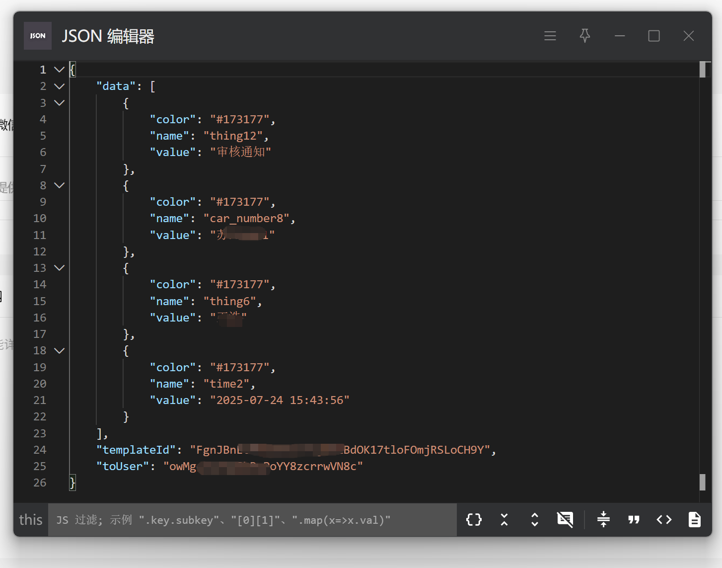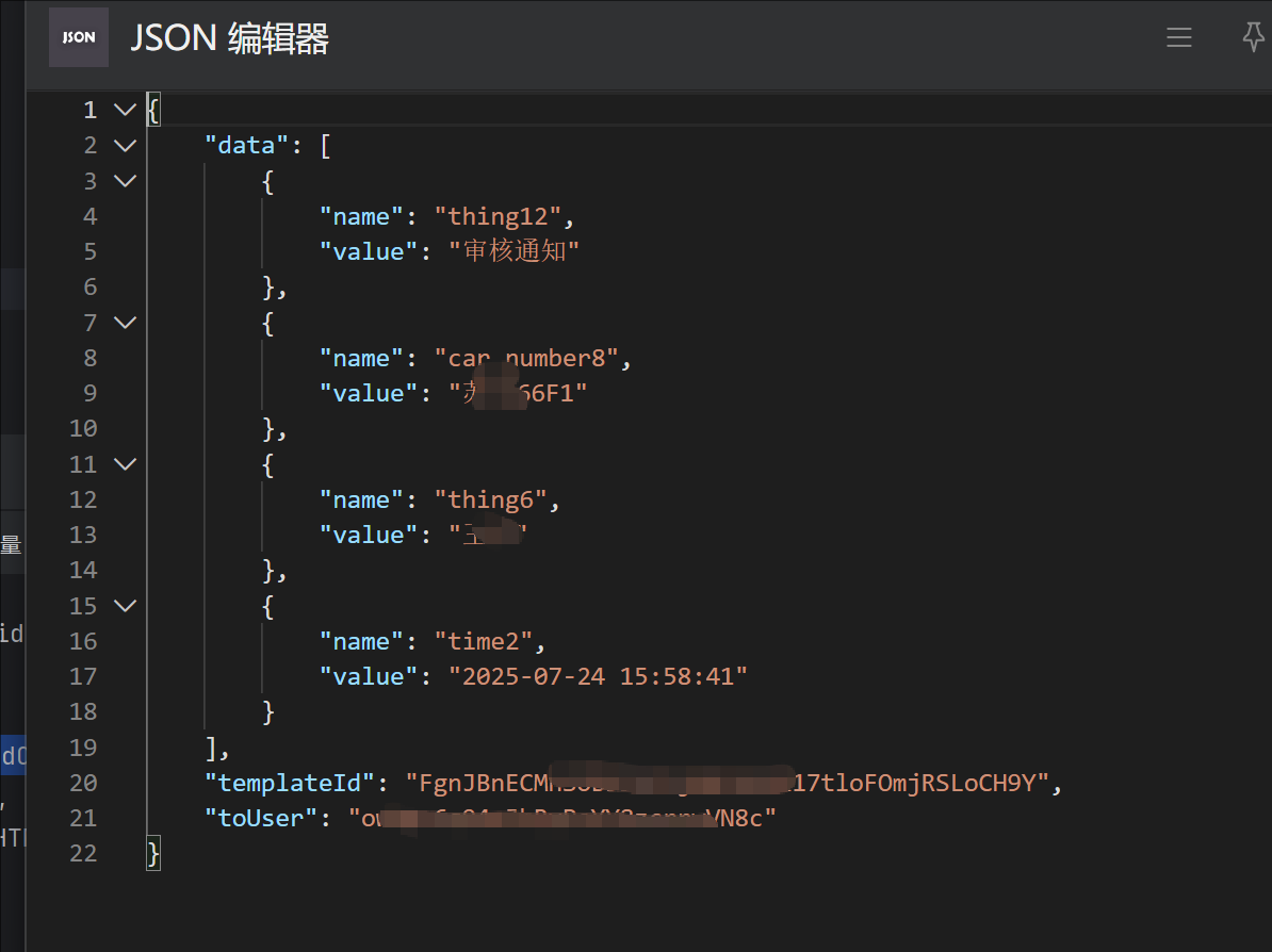 微信后台在解析模板消息内容时,要求字段名称前必须紧跟“:”,才能正确识别并替换相应的动态值。如果未加上“:”,微信将无法识别这是一个需要替换的动态字段,从而导致消息内容为空。