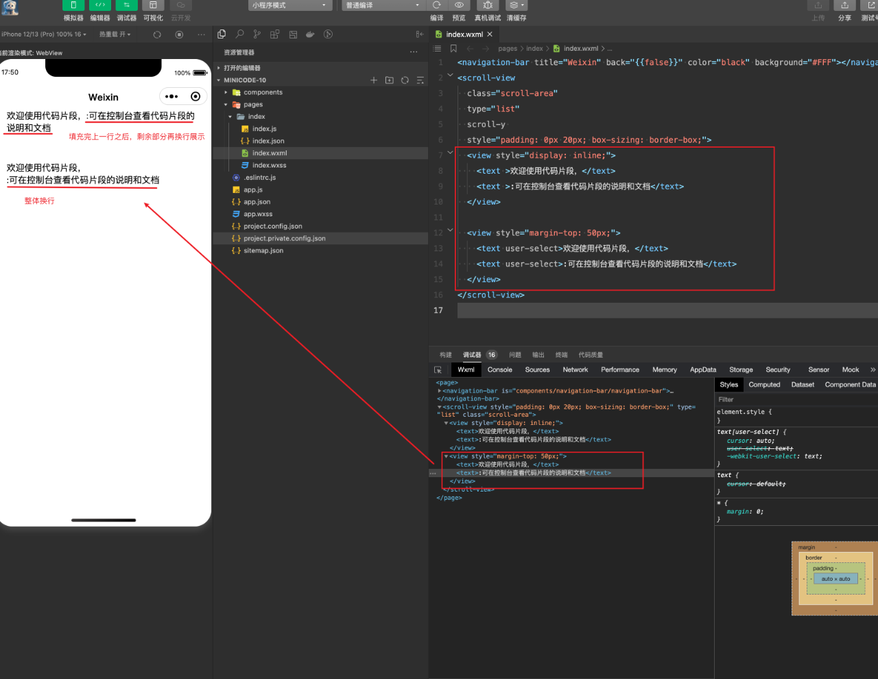 微信小程序的Text组件,设置user-select之后,当一行放不下这个text文本的时候,会整体换行。有没有什么办法让这是user-select的text组件按照原来的样式正常换行(填充完当前行之后剩下部分的再换行展示)