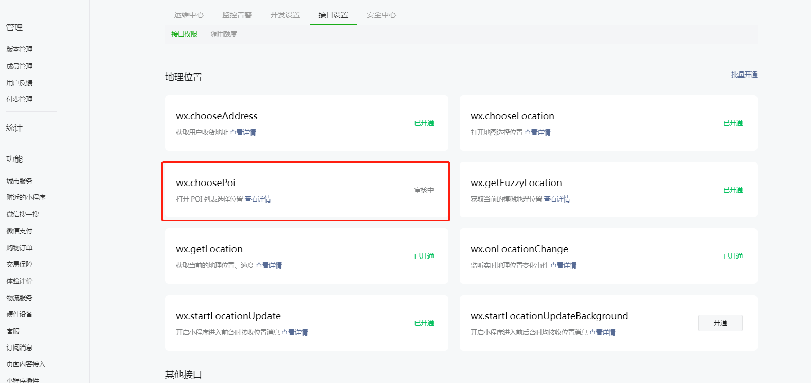 wx.getLocation 一直是返回 61031,显示审核中的状态