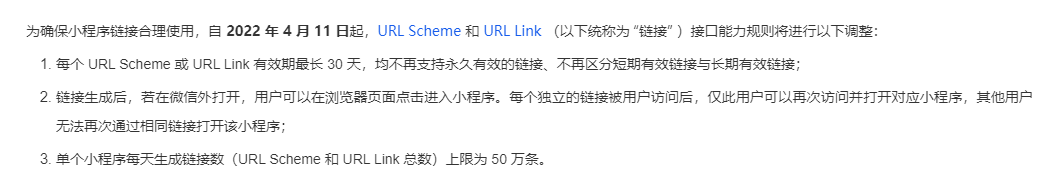 “链接生成后,若在微信外打开,用户可以在浏览器页面点击进入小程序。每个独立的链接被用户访问后,仅此用户可以再次访问并打开对应小程序,其他用户无法再次通过相同链接打开该小程序”