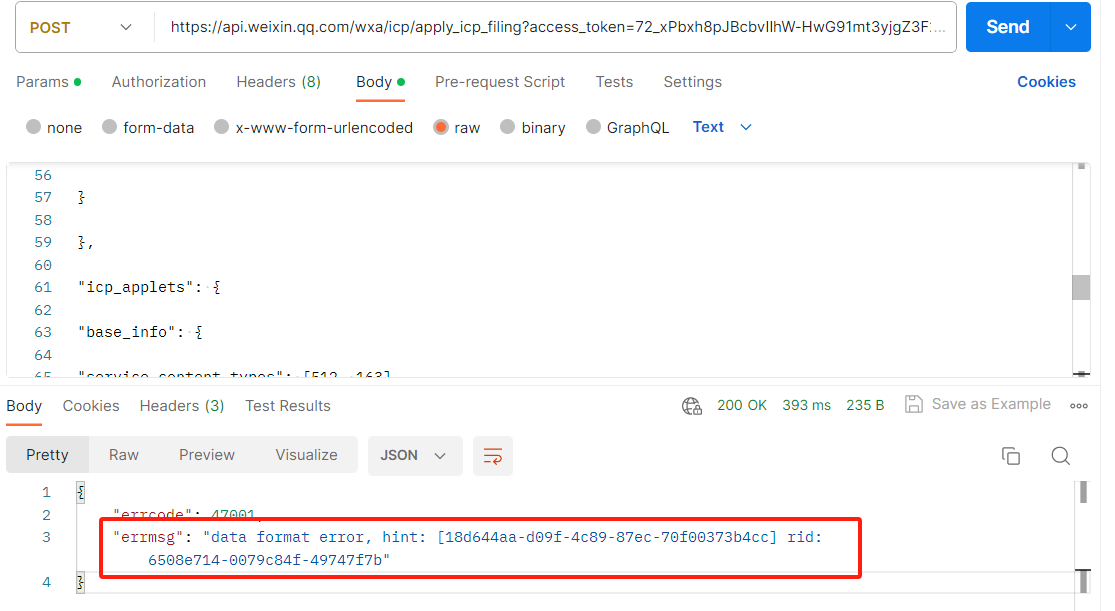 这个字段我一个个的照着文档去对比了,单词没有拼写错误,也没有漏掉必传的字段,不知道什么原因。格式化JSON也没有任何错误