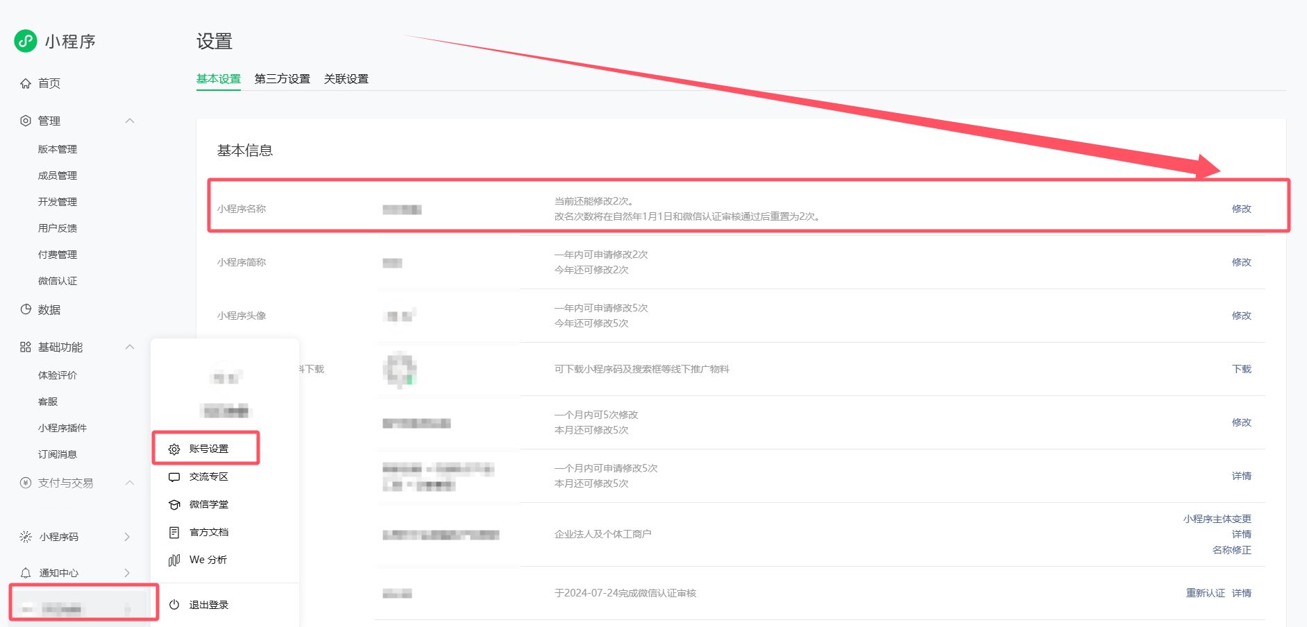 登录小程序后台:https://mp.weixin.qq.com/,自己修改小程序名称。