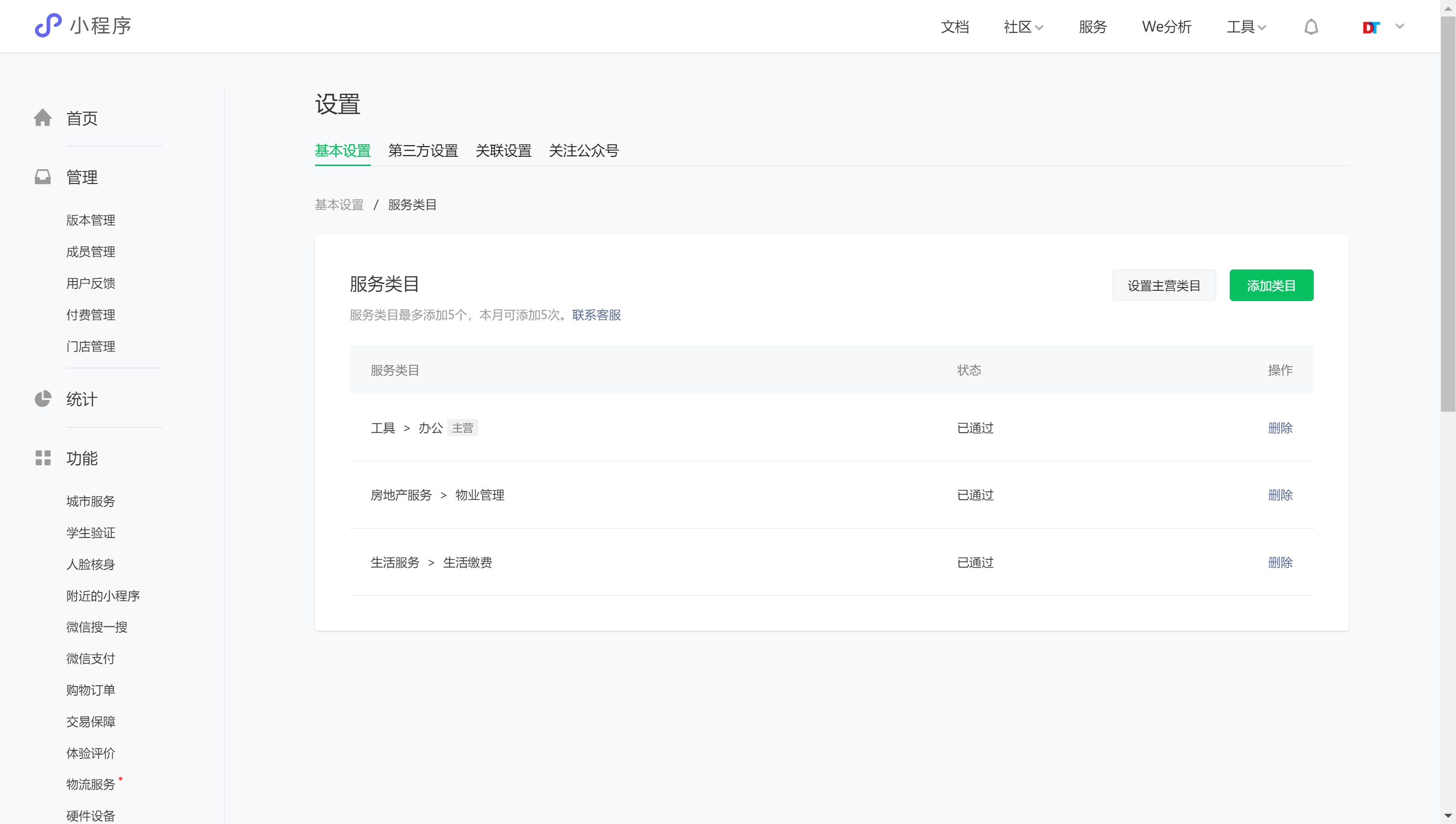 通过查看官方指引发现需要有特定资质才能够调用该原生接口,而我们主营的服务类目为工具/办公、房地产服务/物业管理、生活服务/生活缴费,并不包含在官方的类目中,我们也没有特定资质。(https://developers.weixin.qq.com/community/business/doc/000442d352c1202bd498ecb105c00d)