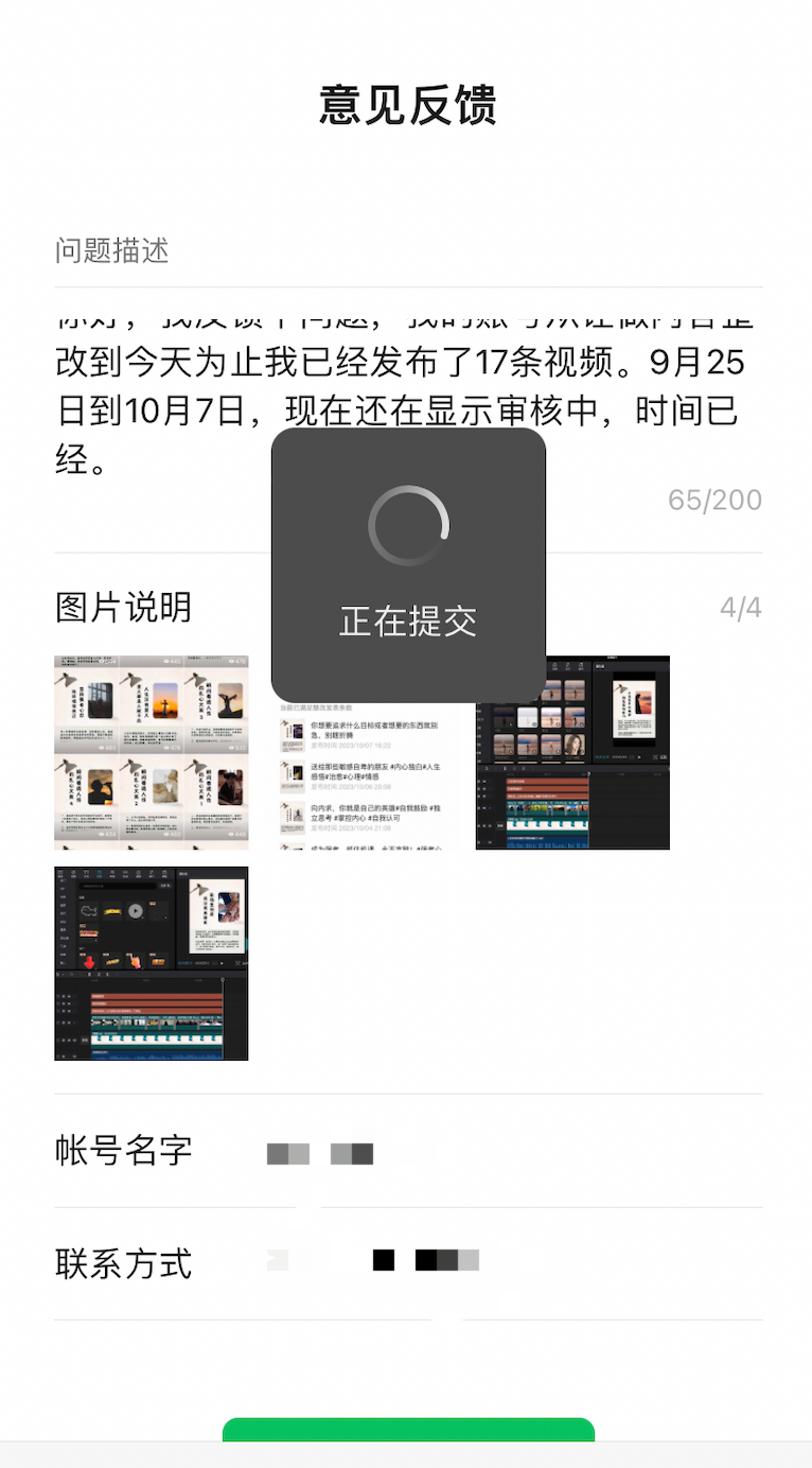 你好,我的账号从让做内容整改到今天为止我已经发布了19条视频。从9月26日到10月7日,也过去11天了,7个工作日了,现在还在显示审核中,我遵从平台规则做了内容调整,现在从选题、文案到剪辑都是自己做的,麻烦给看一下,为什么还在审核,十分感谢。