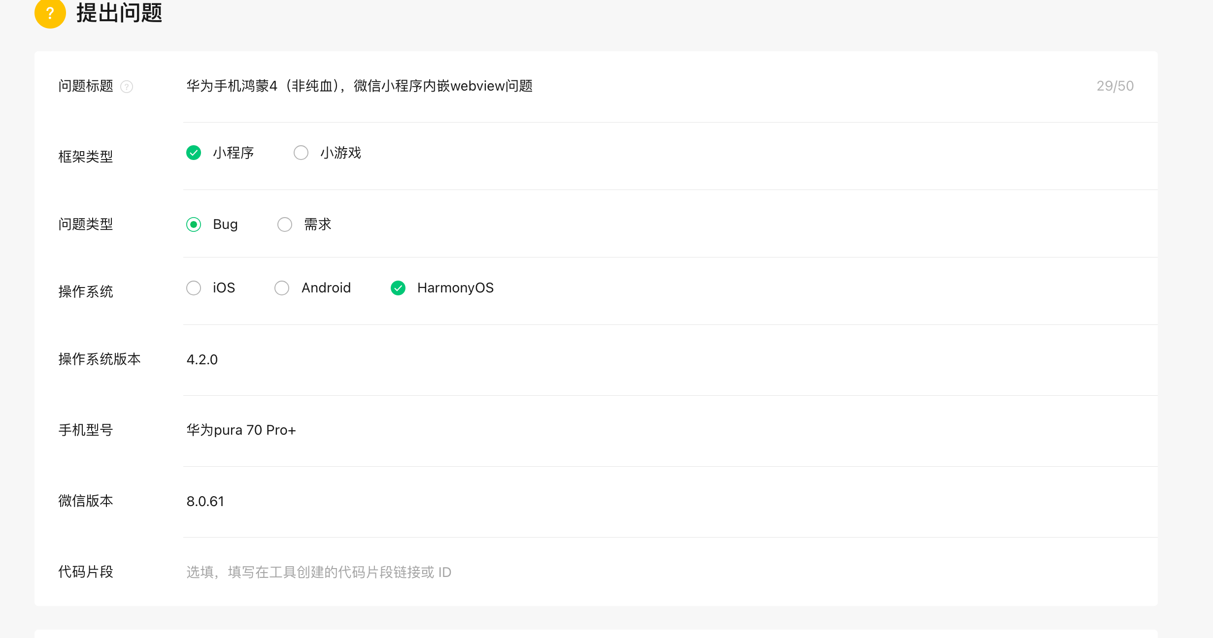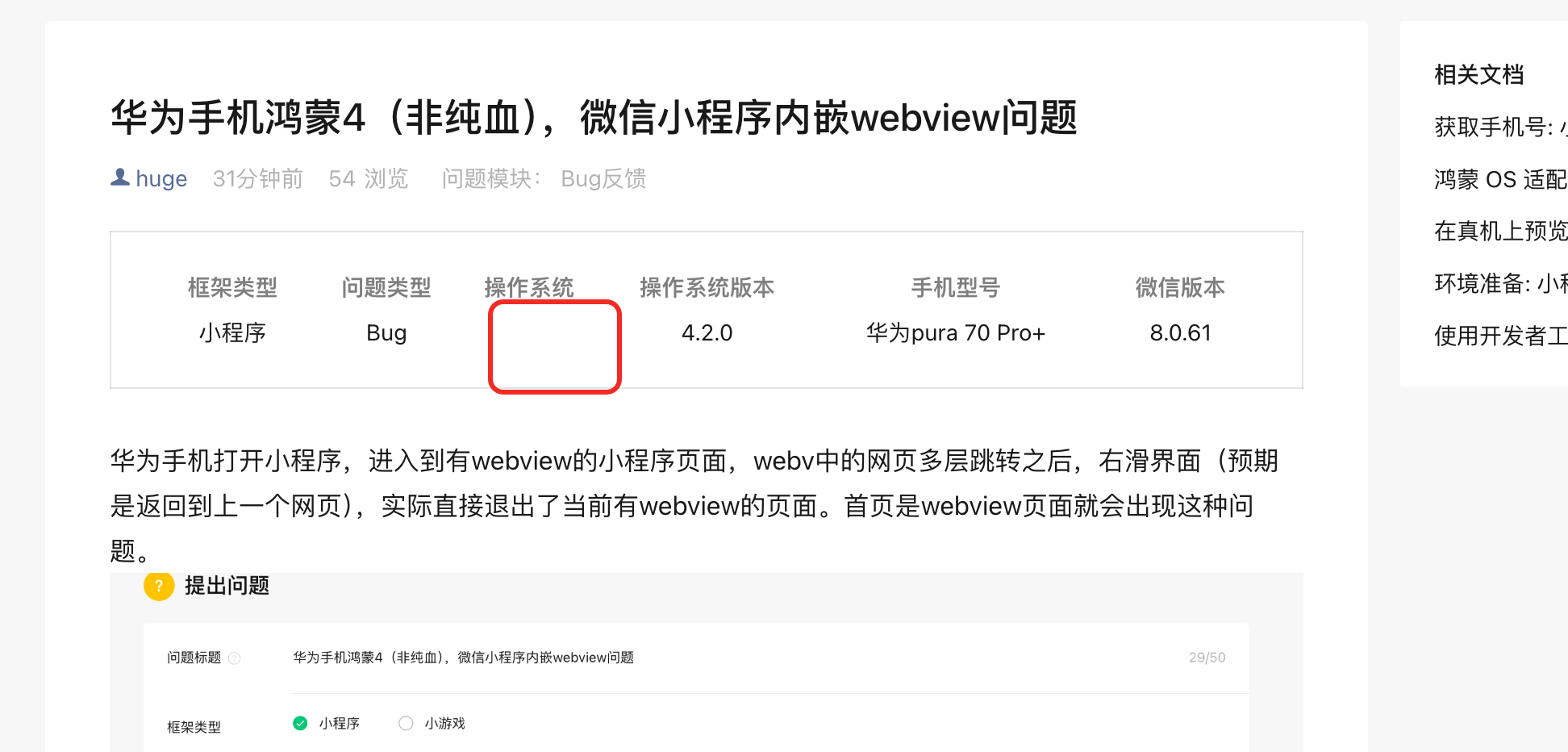 华为手机打开小程序,进入到有webview的小程序页面,webv中的网页多层跳转之后,右滑界面(预期是返回到上一个网页),实际直接退出了当前有webview的页面。首页是webview页面就会出现这种问题。