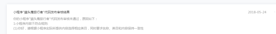 你好,经核实,贵方小程序【关于我们】页面内容涉及商业推广宣传,属个人小程序未开放类目,建议选择企业主体小程序,或只保留旅游攻略内容。