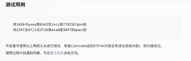 你好,测试用例通过说明没有接入成功,请参考此贴自查调用方式:https://developers.weixin.qq.com/community/develop/doc/0000020aae8510057b47117575b000?highLine=imgSecCheck%2526%2520msgSecCheck