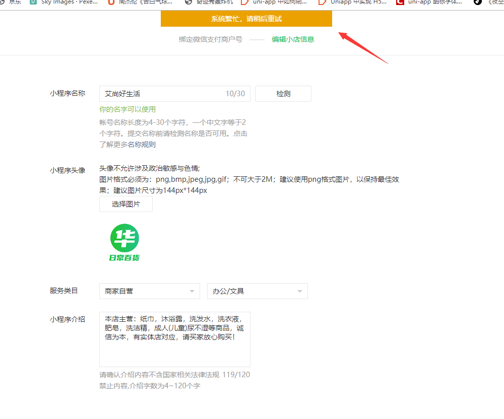 一点提交,页面就弹出提示系统繁忙请稍后再试,换了好几台电脑了,浏览器都换了好几个,还是这样,打客服也打不进去,问题提出来了也没人回答你们叫我们怎么弄