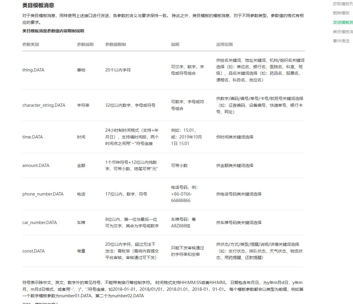 模板消息参数类型phrase类型吗?我在文档中没有看到该类型的说明 当参数的值为数字和英文的时候都会提示参数类型错误,该类型的值是否只能为中文