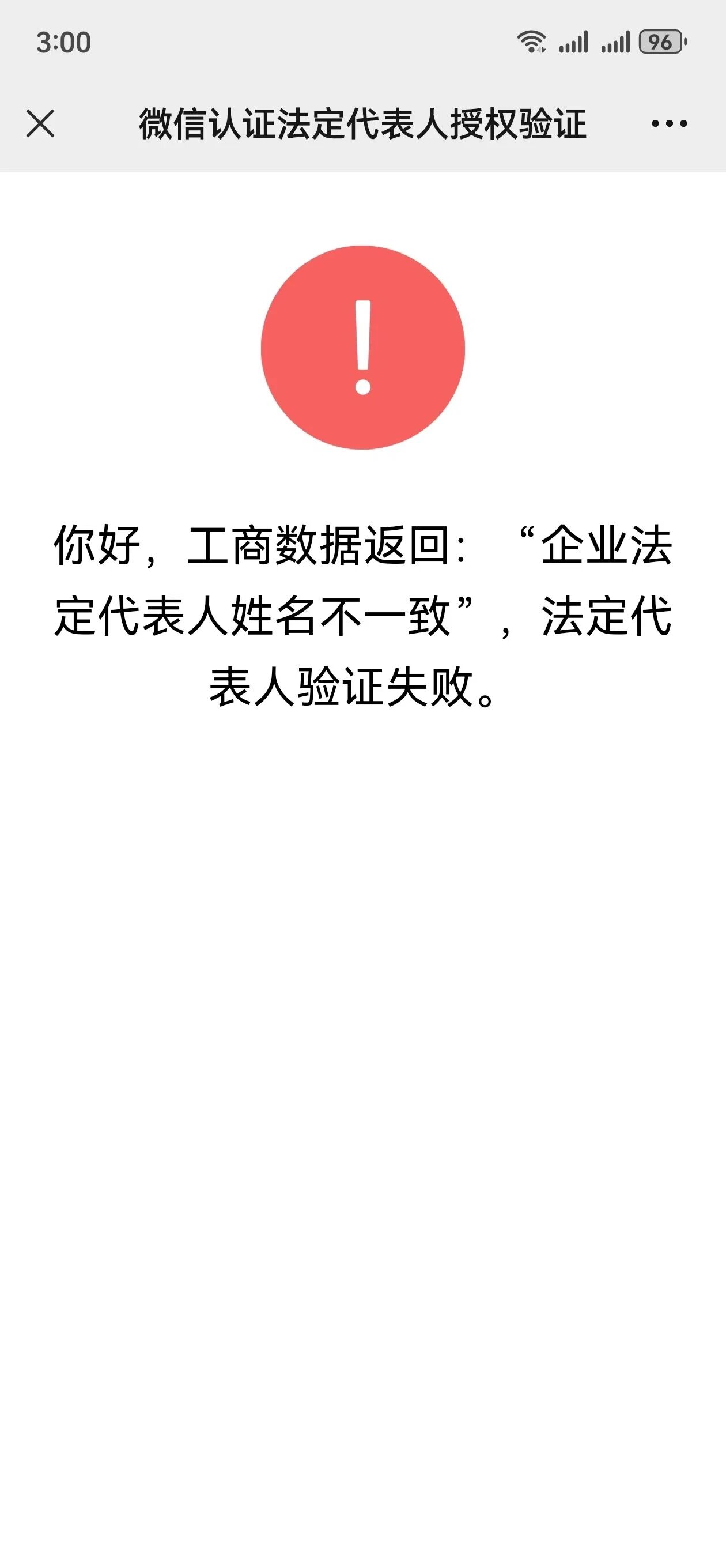 你好,工商数据返回:“企业信息或法定表人信息不一致”。法定代表人验证失败?