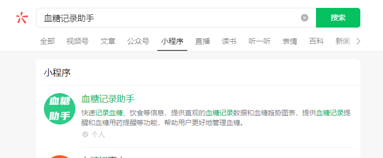 发现除非输入全称,否则少一个字都无法搜索到小程序?比如搜索血糖记录 为什么其他的不相关的都能搜索到,但是我专门提供相关内容服务的却不能呢?开个小程序很不容易,运营更难,请官方关注帮忙解答下
