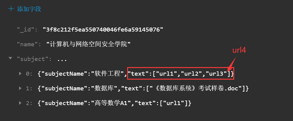 在已知name,subjectName的情况下,如何在相对应的text中添加一个元素url4?