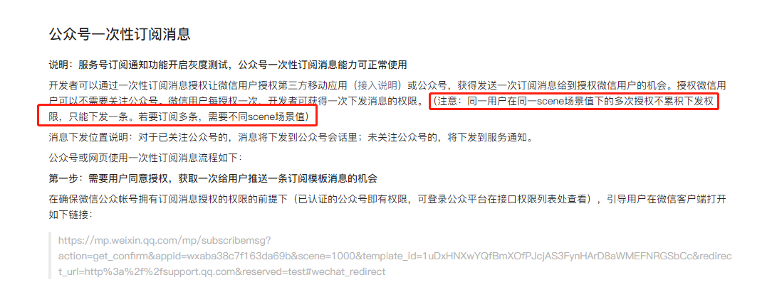 举例同一用户在某个button下调用订阅通知且同意授权,scene场景值ID为1000,可以下发一条消息,若是在同一button下(scene场景值ID为1000不变),多次订阅授权,仅能发一条消息,是这个意思吗?