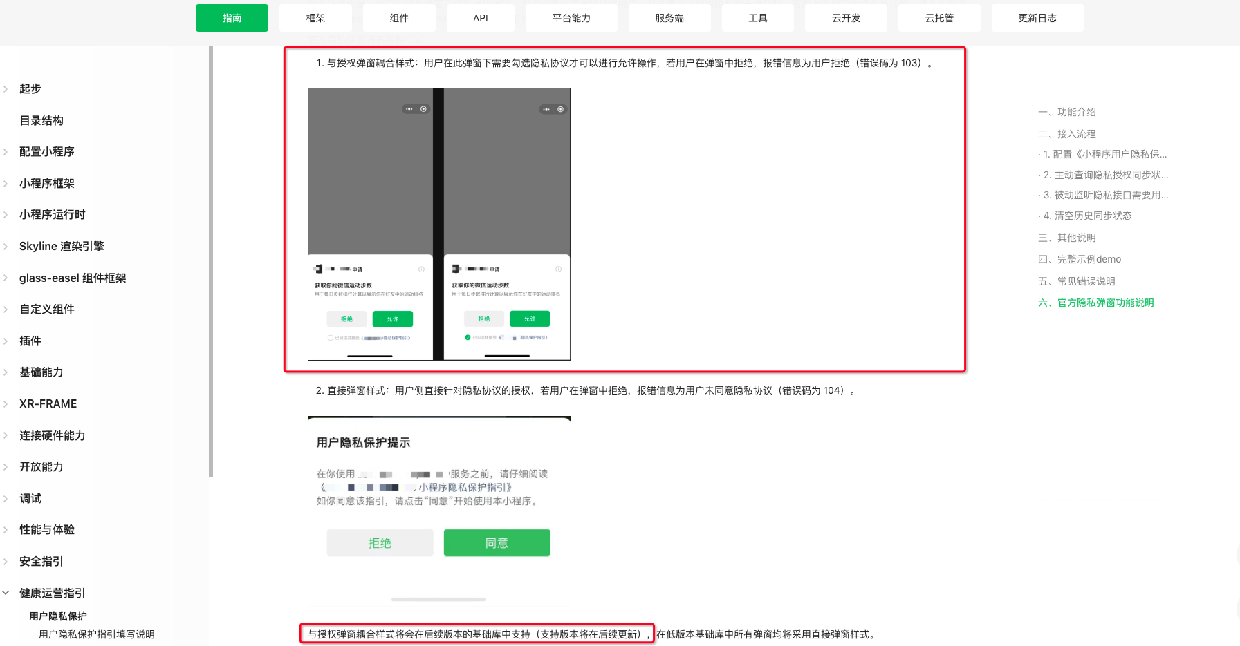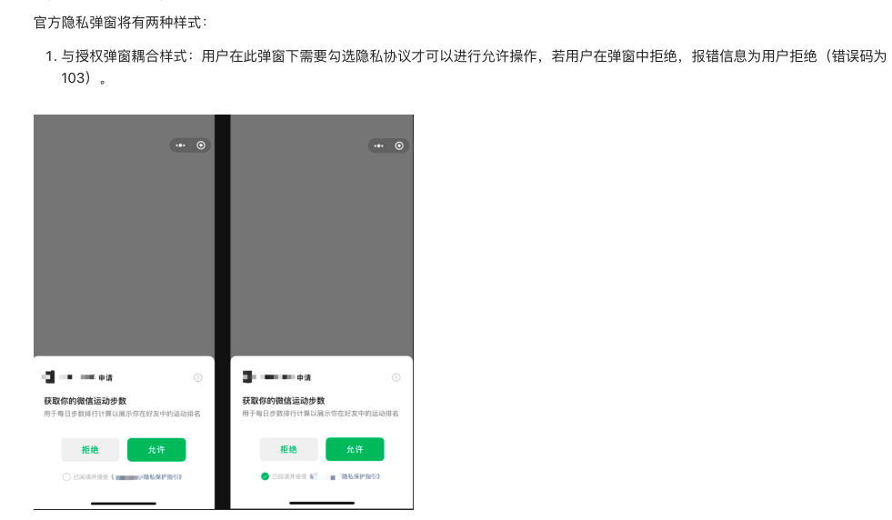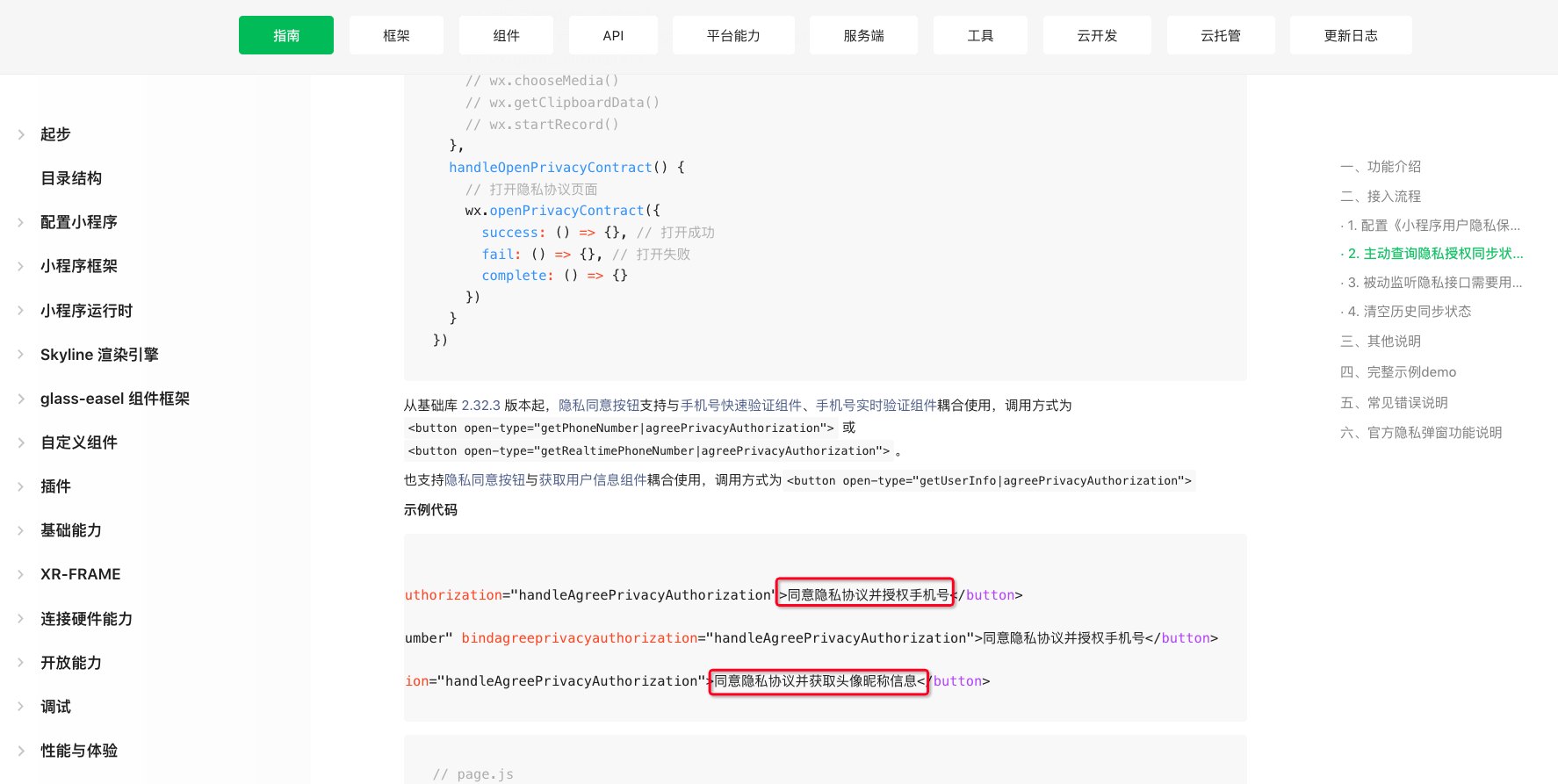 背景是:最近想接头像昵称授权,发现官方好像更新隐私授权的要求了,隐私授权不用单独一个弹窗、可以合并调用。但问题是官方指南有点晕,给到了基础库2.32.3的示例,指南最下面又说没更新(所以是指南还没更新好?)