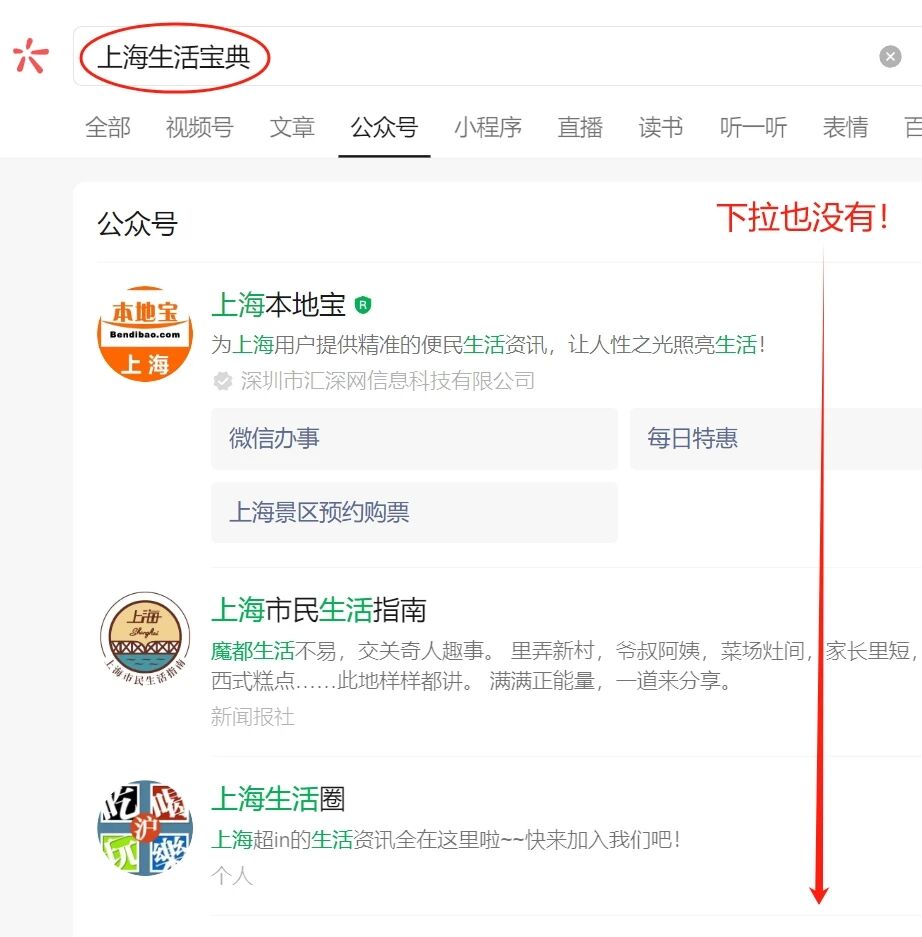 1.上海生活宝典公众号,在搜一搜上搜不到了!
