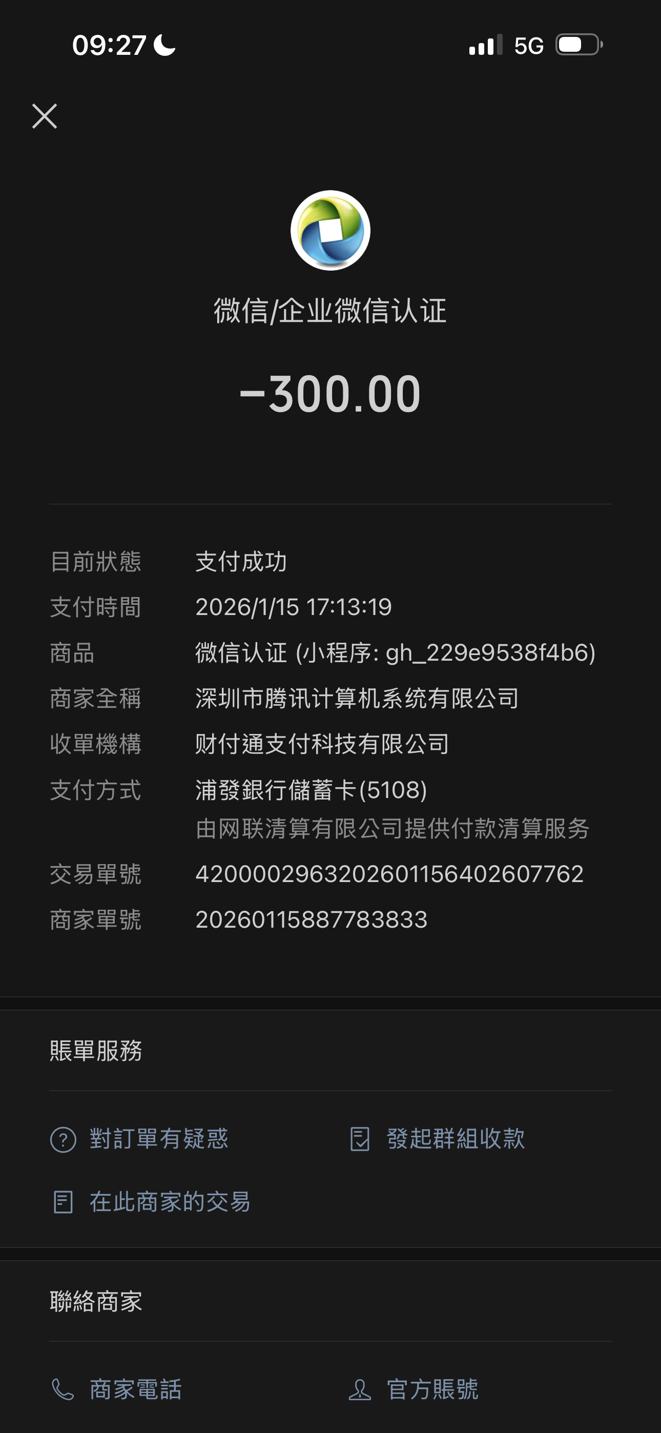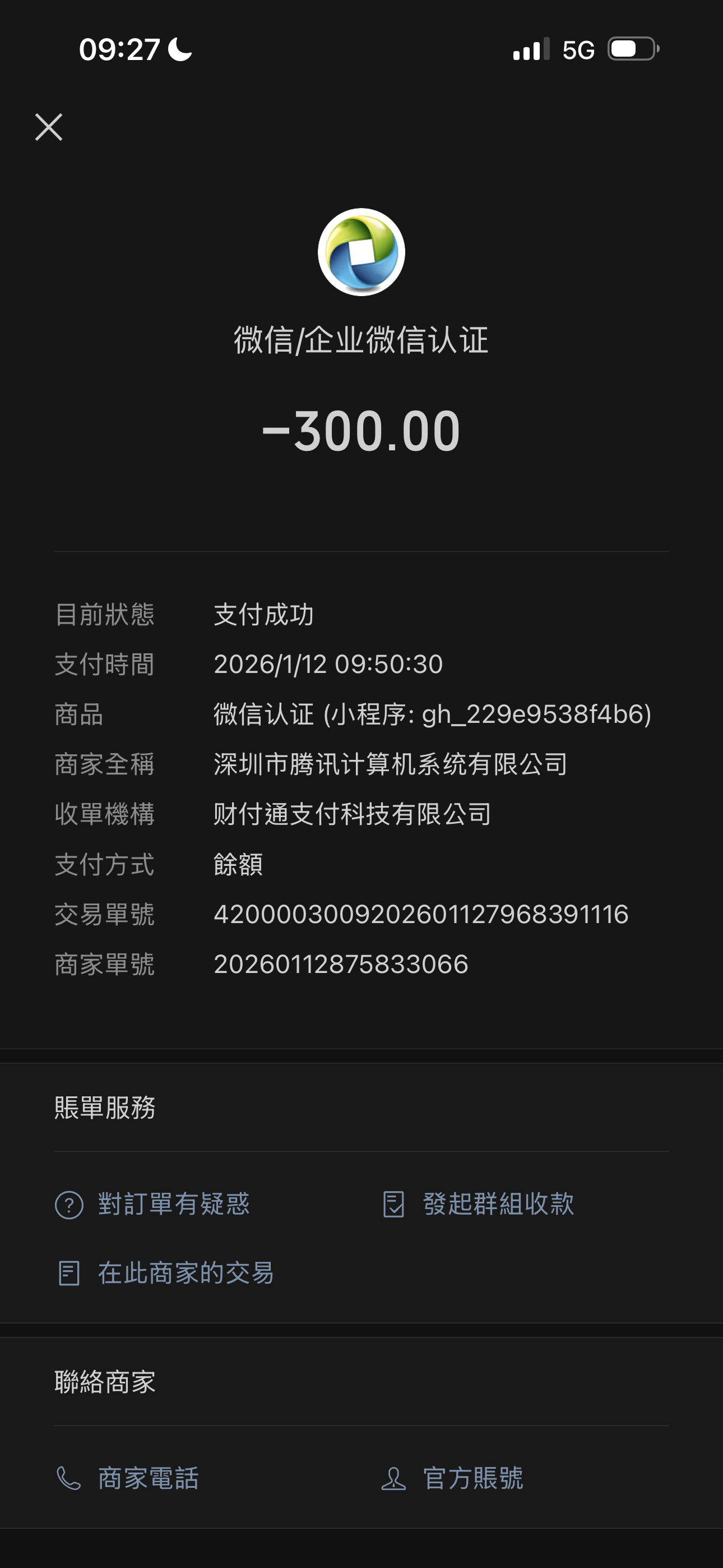 我着急使用小程序,因为公司业务要求,所以我按照要求又填写了一遍,又出来一次300元认证费,接听到第二个认证机构电话通知不需要进行小额打款,这次成功资质认证成功,并且我本次认证两次的情况给说明了,该客户电话告知认证的费用改为次年年审费用,但是我并没有看到延期通知。