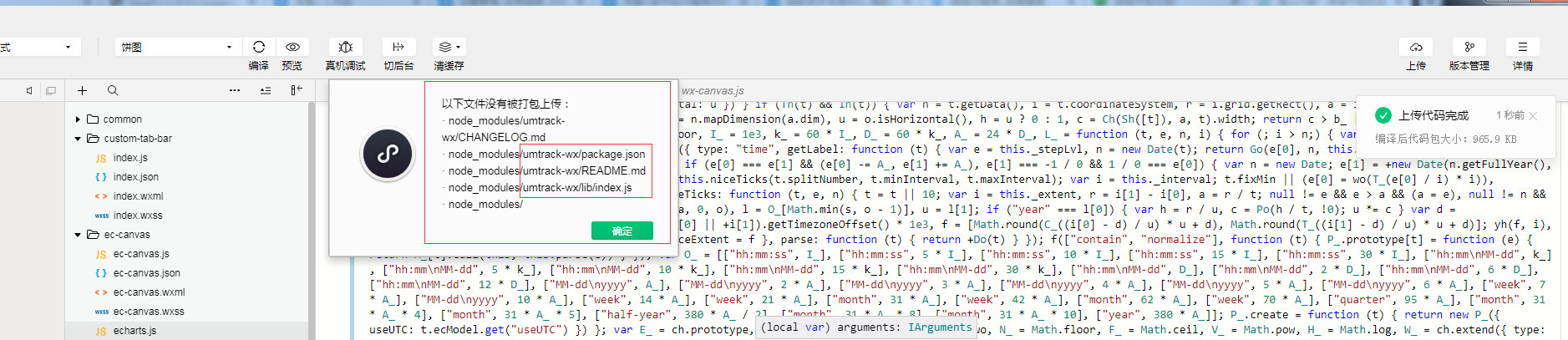加了一套友盟的数据统计代码,提示文件未被打包上传,请问如何解决?