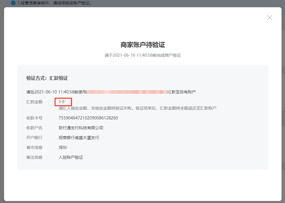 注册微信小商店汇款验证时,系统弹出的汇款金额是1个,这是啥意思,需要汇多少钱?