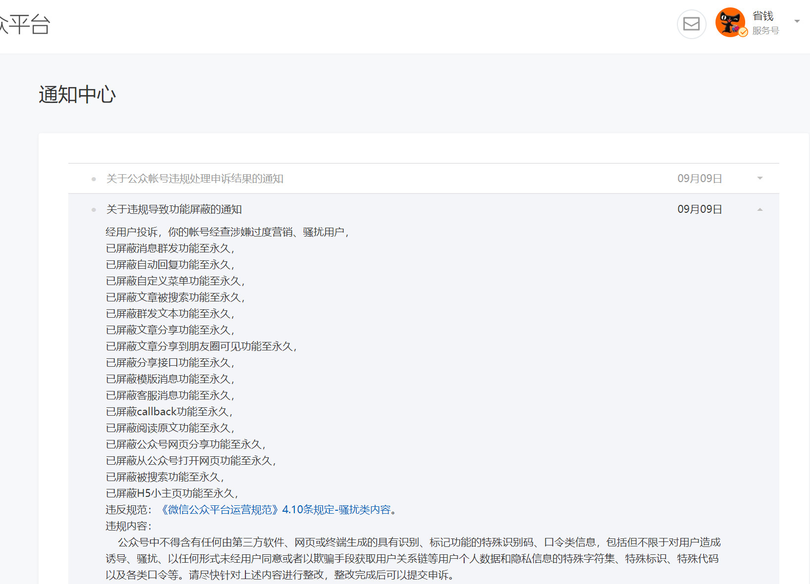 1.我的公众号才正式营运半个月左右 何来的过度营销,骚扰用户,我们到目前为止公众号没有发表过一篇文章 所以不存在营销和骚扰用户