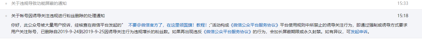 2.我的公众号粉丝量才400多,很明显我觉得是同行恶意举报的