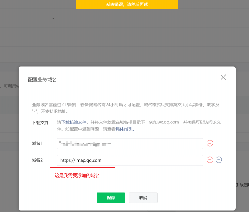 你能把校验文件,放在map.qq 这个域名的根目录下面去啊