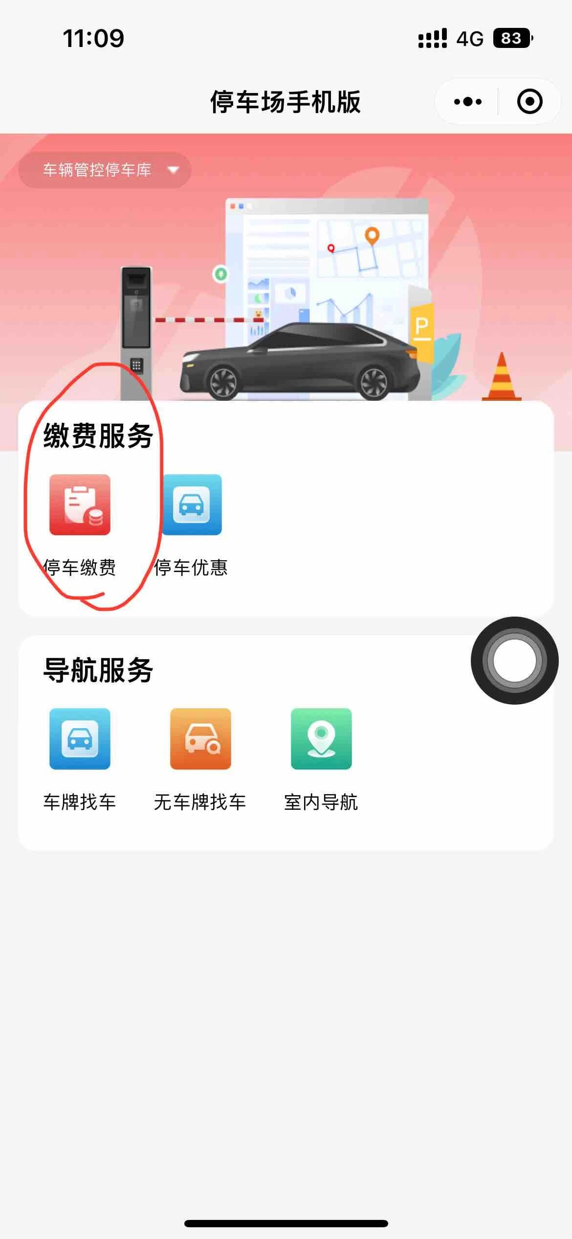 2. 点击“停车缴费”图标