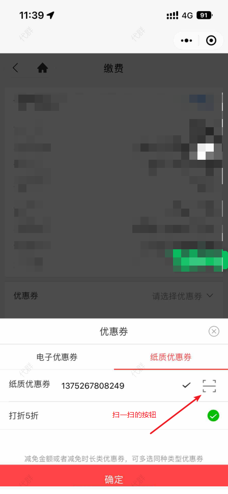 5. 点击“扫一扫”图标,扫描下图所示条形码,即可复现(识别出券码后,自动跳转回首页;想要的效果是 停留在当前页面)