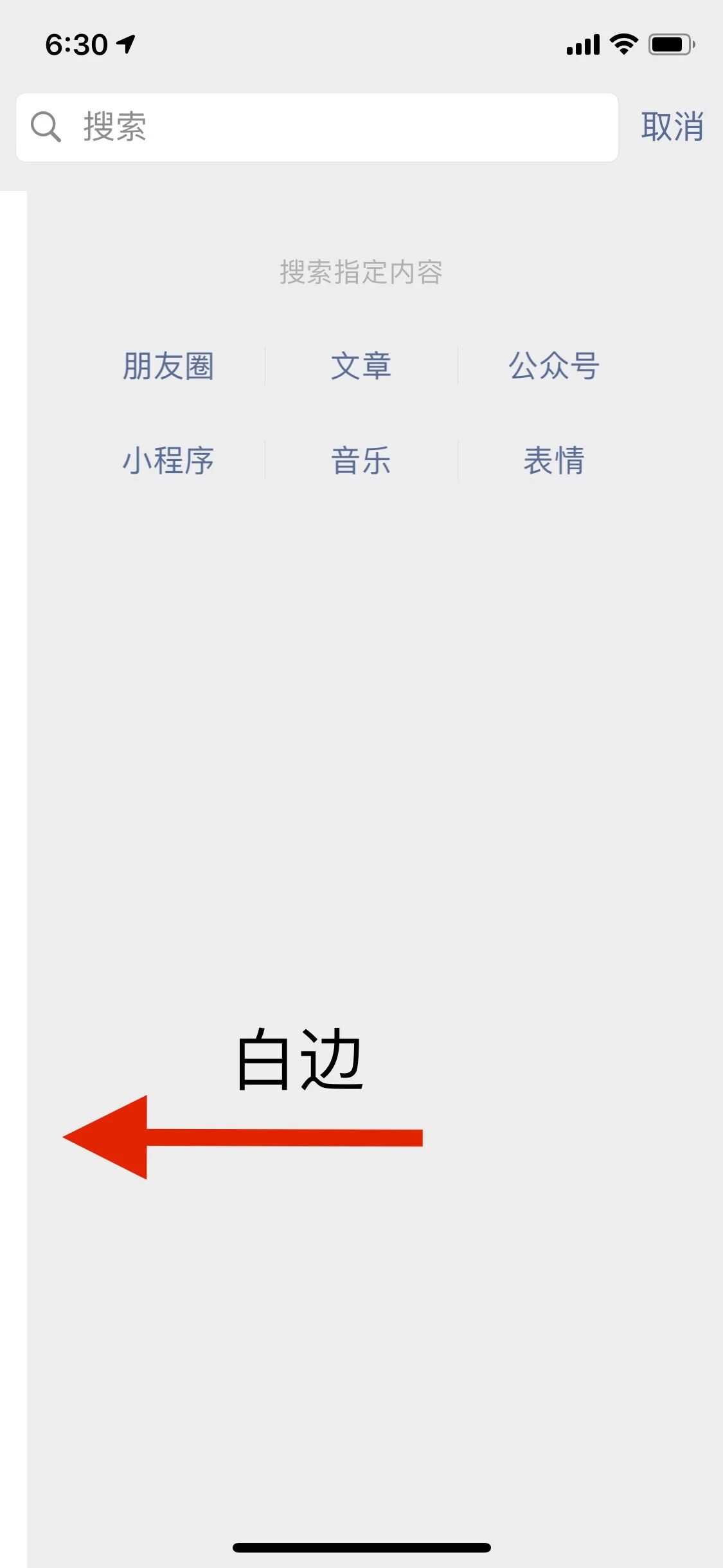 首页的搜索框,点击之后进入搜索页面左边会有一个白条。 这是啥情况?