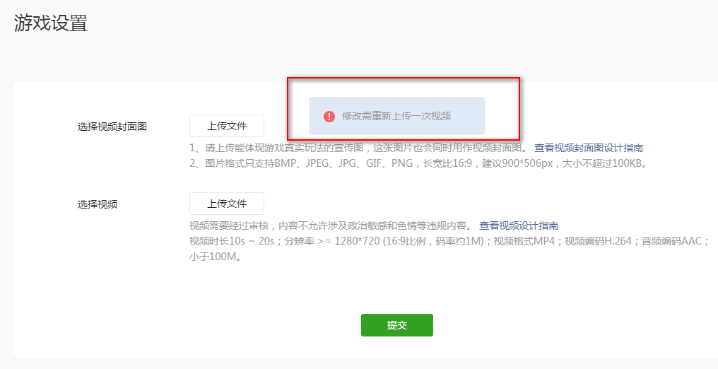 管理员,这事总得看看吧,直接bug啊,“运营素材配置” 里面的“宣传视频“,那里配置,我提交了视频素材,发现不对劲,然后又撤回了,想重新修改为新的,结果就是下图这样,不能上传,也不能直接提交旧版本。总的来说:上传不行,或者不上传也不让提交.,死循环在这里。