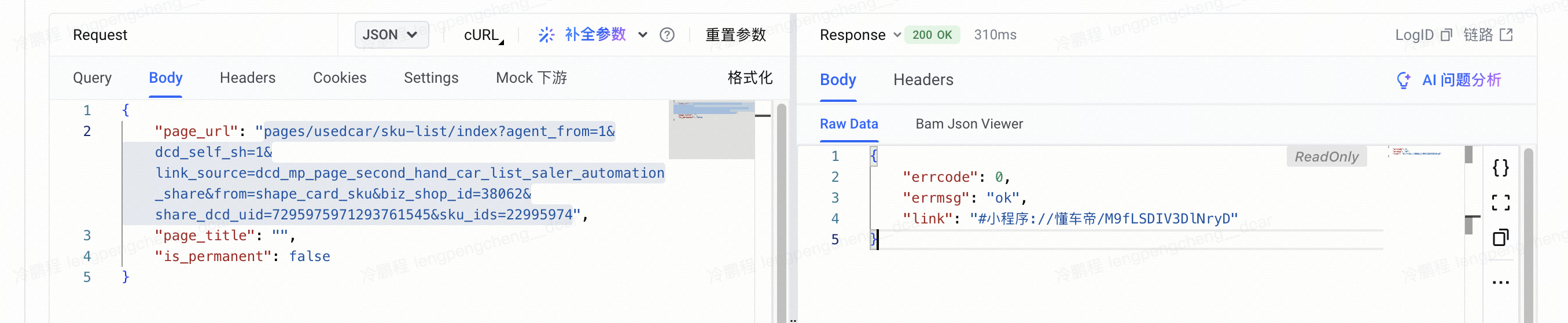 入参page_url:pages/usedcar/sku-list/index?agent_from=1&dcd_self_sh=1&link_source=dcd_mp_page_second_hand_car_list_saler_automation_share&from=shape_card_sku&biz_shop_id=38062&share_dcd_uid=7295975971293761545&sku_ids=22995974
