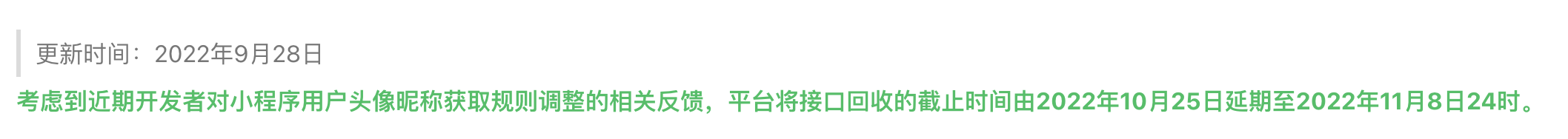 官网说法是11月8日开始回收,为什么现在新发版的小程序就已经拿不到用户头像和昵称了???