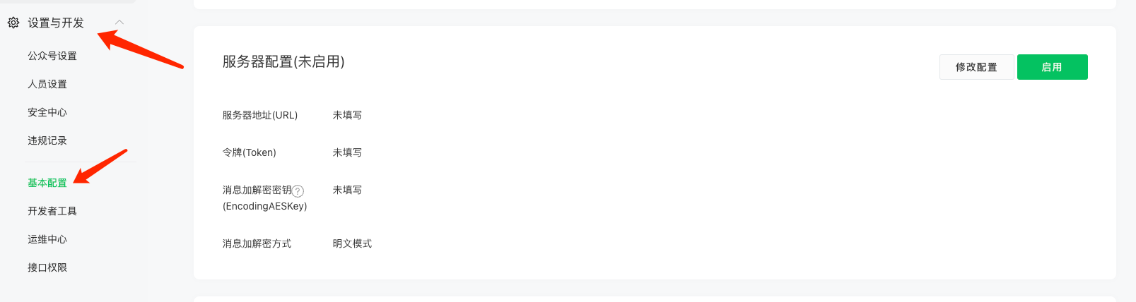 在微信公众平台后台找不到地方配置token和EncodingAESKey